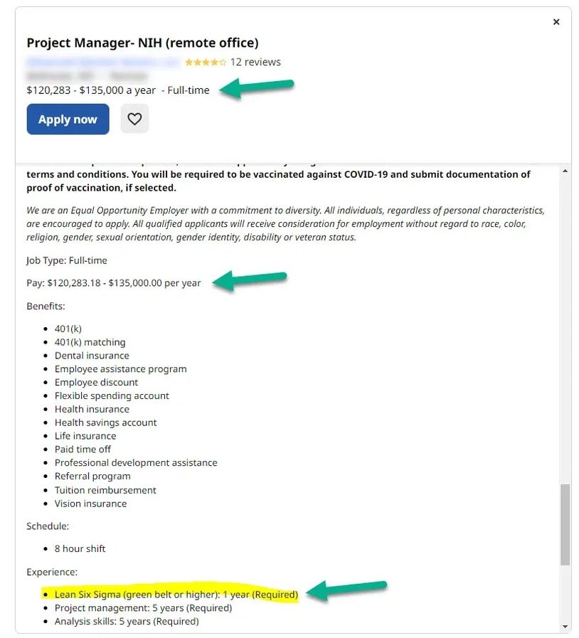Don't take my word for it, search your favorite job board site and look for Lean Six Sigma. You will find many high paying opportunities that all ask for some level of Lean Six Sigma experience, training and or a certification.